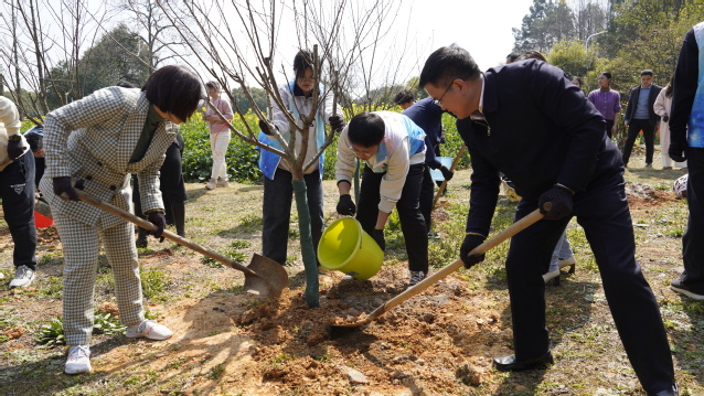 3月12日上午,在我国第46个植树节到来之际,开云手机端·官方版在线组织开展了以“植于自然 共享蓝天”为主题的义务植树活动,全体在家校领导和部分师生志愿者代表等60余人参加活动。