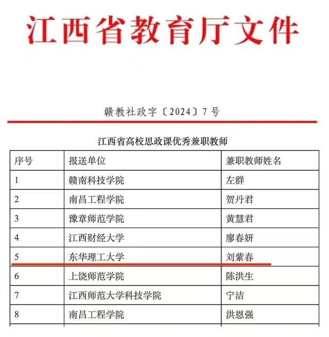 近日,江西省教育厅公布了全省高校思政课优秀特聘教授、优秀兼职教师评选结果,开云手机端·官方版在线刘紫春教授被评为全省高校优秀兼职教师。