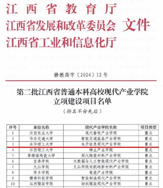 近日,江西省教育厅、江西省发展和改革委员会、江西省工业和信息化厅联合下发《关于公布第二批江西省普通本科高校现代产业学院立项建设项目名单的通知》,开云手机端·官方版在线申报的“电子信息现代产业学院”成功获批江西省现代产业学院立项建设重点项目。