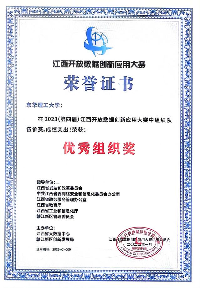 3月13日,由省发展改革委、省委网信办、省政务服务办、省教育厅、省工信厅、赣江新区管委会共同指导,省大数据中心和赣江新区创新发展局联合主办的2023(第四届)江西开放数据创新应用大赛颁奖仪式在赣江新区举行。开云手机端·官方版在线参赛项目荣获三等奖1项、优秀奖1项,并获大赛“优秀组织奖”(全省仅有三所高校)。
