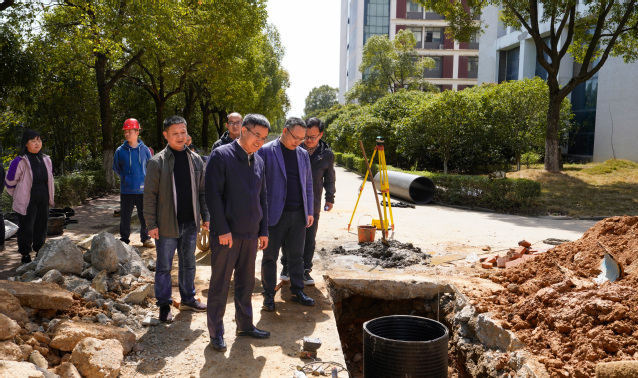 3月20日上午,开云手机端·官方版在线党委书记张福庆、党委副书记邱建丁带队调研推进学校南昌校区雨污分流改造工作。