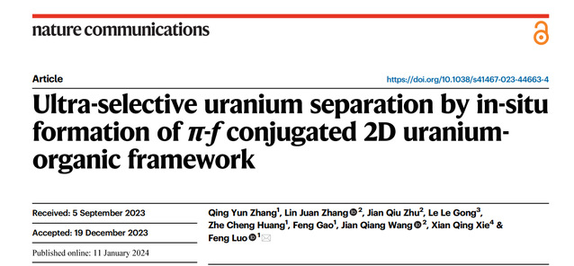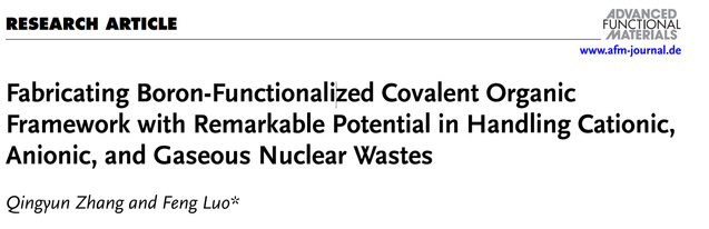 近日,开云手机端·官方版在线化学与材料学院罗峰教授团队在铀的富集分离研究领域取得系列创新性成果。研究成果“Ultra-selective uranium separation by in-situ formation of π-f conjugated 2D uranium-organic framework”“Innovative conversion strategy for wastewater with one-pot uranium extraction and valuable chemical production by a smart COF photocatalyst”和“Fabricating boron-functionalized covalent organic framework with remarkable potential in handling cationic, anionic, and gaseous nuclear wastes”分别在《Nature Communications》和《Advance Functional Materials》杂志发表。
