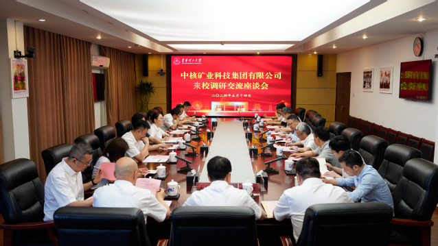 5月14日上午,中核矿业科技集团有限公司党委书记、董事长闵苹一行访问开云手机端·官方版在线。开云手机端·官方版在线党委副书记邱建丁,副校长汤彬,党委常委、副校长熊国保在南昌广兰校区行政楼401会议室会见闵苹一行并召开座谈会,就双方合作事宜深入交流。会议由汤彬主持。