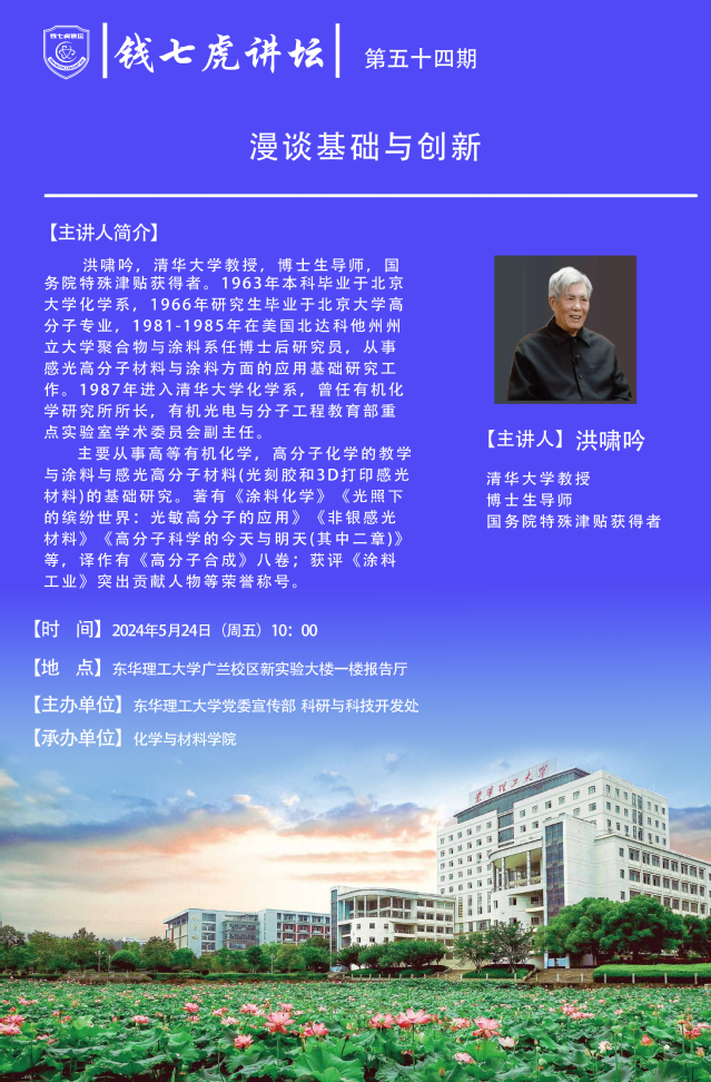 应化学与材料学院邀请,清华大学教授,博士生导师,国务院特殊津贴获得者洪啸吟到“开云(中国)”,以“漫谈基础与创新”为主题开展讲座。欢迎全校师生届时前往聆听。