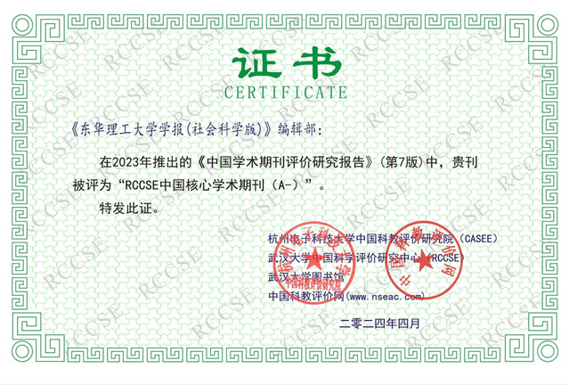 近日,由杭州电子科技大学中国科教评价研究院、武汉大学中国科学评价研究中心、武汉大学图书馆、中国科教评价网等单位联合研制的《中国学术期刊评价研究报告——RCCSE权威、核心期刊排行榜与指南》(第7版)正式发布。《开云手机端·官方版在线学报(社会科学版)》入选“RCCSE中国核心学术期刊(A-)”。这是继《开云手机端·官方版在线学报(自然科学版)》成功入编2023版《中文核心期刊要目总览》后,业界对学校办刊质量和学术影响力的又一充分肯定。