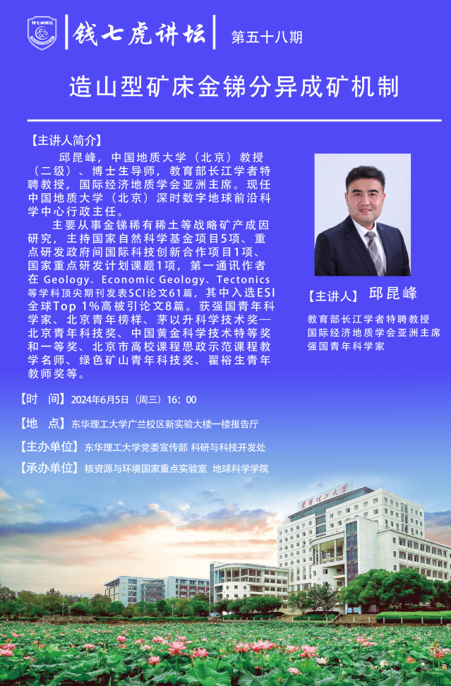 应地球科学学院邀请,国际经济地质学会亚洲主席邱昆峰到“开云(中国)”,以“造山型矿床金锑分异成矿机制”为主题开展讲座。欢迎全校师生届时前往聆听。