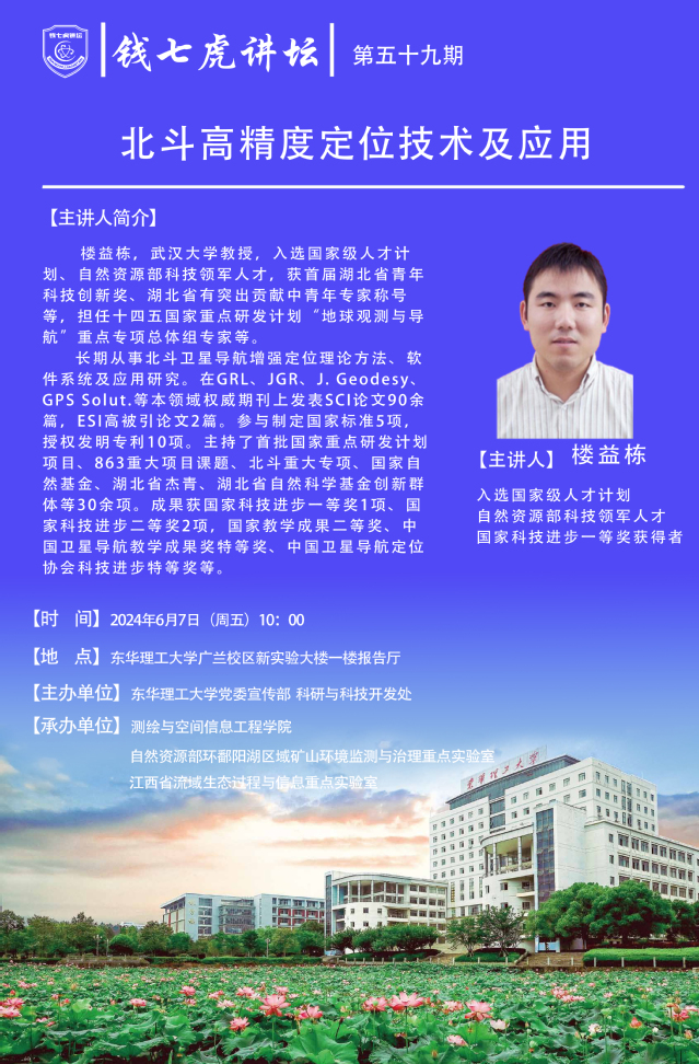 应测绘与空间信息工程学院邀请,武汉大学教授,入选国家级人才计划、自然资源部科技领军人才楼益栋到“开云(中国)”,以“北斗高精度定位技术及应用”为主题开展讲座。欢迎全校师生届时前往聆听。