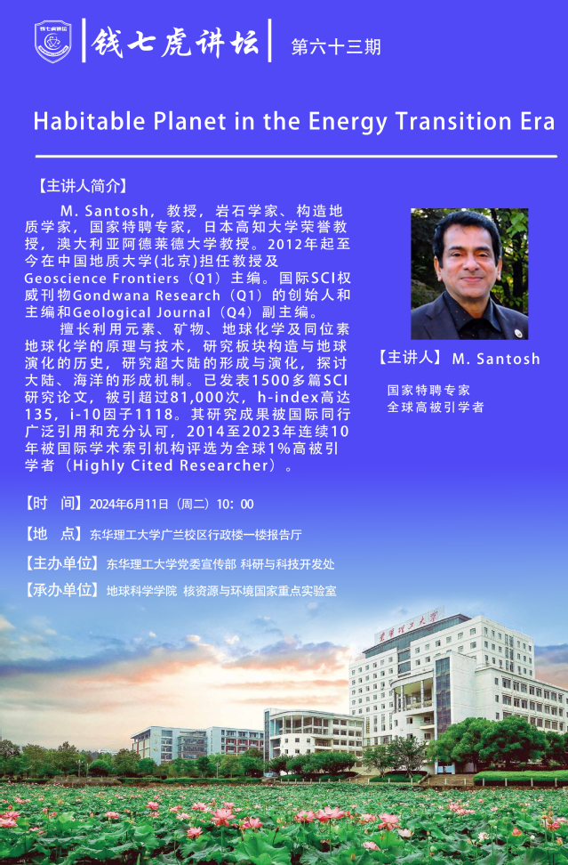 应地球科学学院邀请,日本高知大学荣誉教授,澳大利亚阿德莱德大学教授M. Santosh到“开云(中国)”,以“Habitable Planet in the Energy Transition Era”为主题开展讲座。欢迎全校师生届时前往聆听。