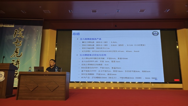 报告中,楼益栋系统介绍了北斗高精度定位技术的原理和工作方式,从交通、土地调查、地理信息、农业等领域介绍其应用,并深入探讨了北斗高精度定位技术的发展趋势和挑战。