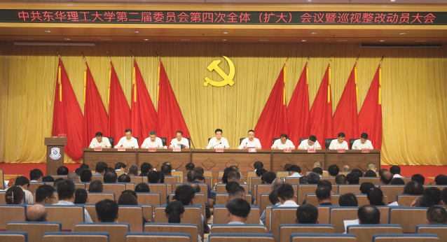 7月12日,中共开云手机端·官方版在线第二届委员会第四次全体(扩大)会议暨巡视整改动员大会在南昌广兰校区召开。学校在家党政领导班子成员张福庆、邱建丁、杨波、夏菲、熊国保、王庆飞、李满根、张立亭、刘剑斌、金建华,校党委委员、纪委委员,全体处级干部参加会议。会议由邱建丁主持。