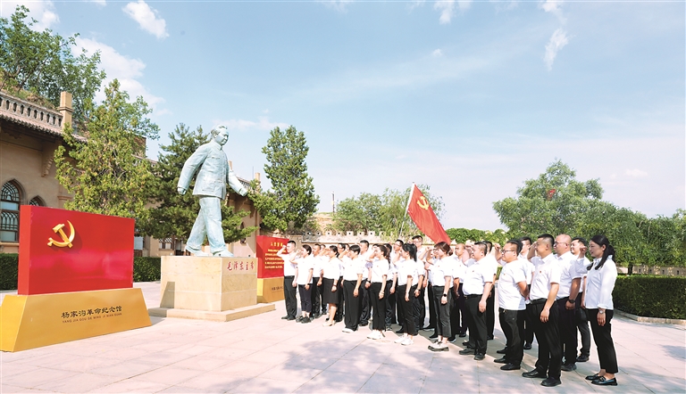 开展党纪学习教育,是加强党的纪律建设、深化党的自我革命的重要举措。近日,陕西省米脂县纪委监委组织纪检监察干部赴杨家沟革命纪念馆开展党纪学习教育主题党日活动,重温党的历史、传承红色基因。图为该县纪委监委党员干部在进行宣誓。刘雄飞 摄
