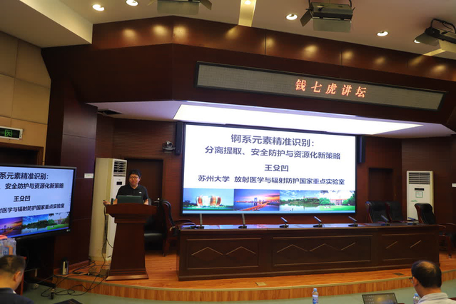 王殳凹教授以“锕系元素精准识别:分离提取、安全防护与资源化新策略”为题,从镧系锕系元素的差异性及多酸配位的镧系锕系分离原理等方面出发,分享了其研究团队开发的新型气-液-固三相同位素交换法历程,并介绍了该方法在锕系元素精准识别和分离提取领域独特的优越性。