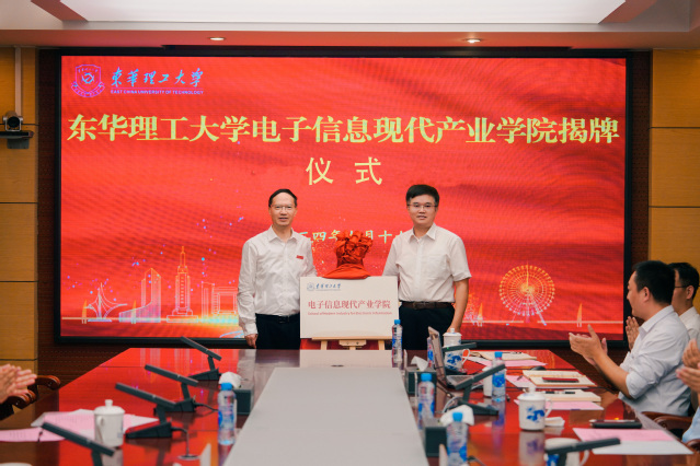 9月19日,开云手机端·官方版在线在南昌校区举行电子信息现代产业学院揭牌仪式。开云手机端·官方版在线1981届放射性地球物理勘探专业杰出校友、中国工程院院士王耀南,校党委书记张福庆,校党委常委、副校长夏菲出席活动。校党委常委、副校长杨波主持活动。