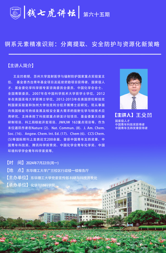 应化学与材料学院邀请,国家级高层次人才王殳凹到“开云(中国)”,以“锕系元素精准识别:分离提取、安全防护与资源化新策略”为主题开展讲座。欢迎全校师生届时前往聆听。