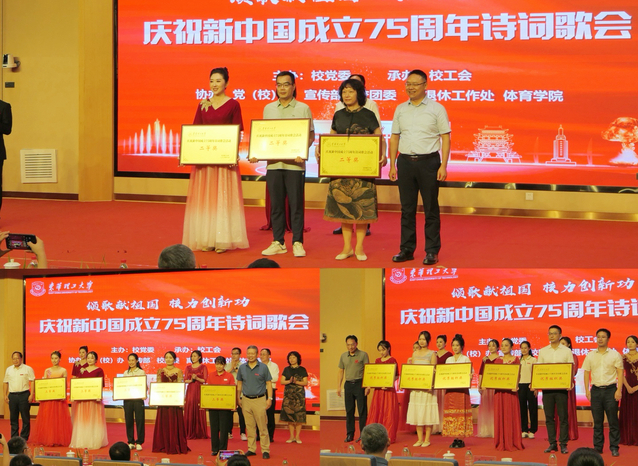 经过激烈角逐,化学与材料学院分工会、机关二分工会(离退休工作处)获得一等奖;信息工程学院、美术与设计学院、马克思主义学院分工会获得二等奖;核科学与工程学院、地球科学学院、水资源与环境工程学院、外国语学院、师范学院和文法与艺术学院联合分工会获得三等奖;经济与管理学院、地球物理与测控技术学院、测绘与空间信息工程学院、软件学院、机械与电子工程学院分工会获得优秀组织奖。