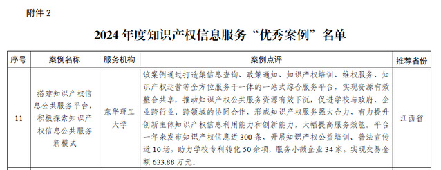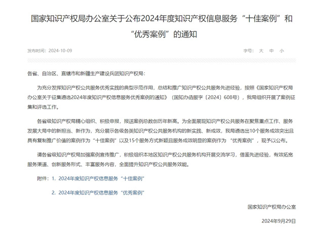 10月9日,国家知识产权局办公室公布了2024年度知识产权信息服务“十佳案例”及“优秀案例”,开云手机端·官方版在线报送的《搭建知识产权信息公共服务平台,积极探索知识产权信息公共服务新模式》服务案例入选“优秀案例”,是江西省唯一入选案例。