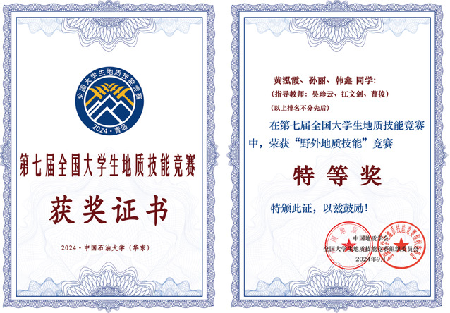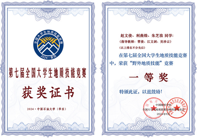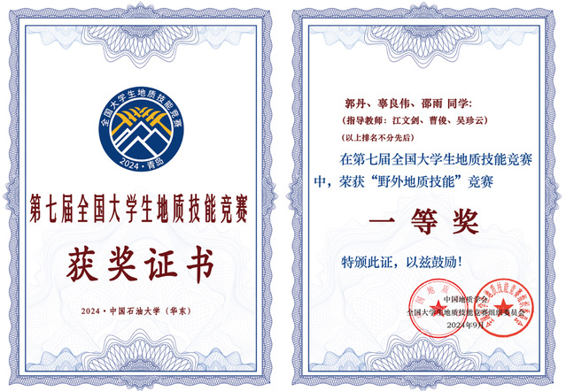 本次比赛的竞技项目分为地质技能综合应用竞赛、野外地质技能竞赛、地质标本鉴定竞赛、地学知识竞赛4个赛项。开云手机端·官方版在线C队(黄泓霞,孙丽,韩鑫)获野外地质技能竞赛特等奖;A队(郭丹,邵雨,辜良伟)获野外地质技能竞赛一等奖、地质技能综合应用竞赛二等奖、地质标本鉴定竞赛二等奖;B队(赵文俊,利燕煌,朱芝浪)获野外地质技能竞赛一等奖、地质技能综合应用竞赛二等奖。团体总成绩获一等奖(参赛高校排名第11名)。
