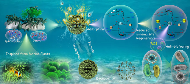 海洋中蕴藏着约45亿吨铀,目前海水提铀存在吸附材料有效结合位点数量有限、海洋微生物污染导致吸附性能下降等问题。基于此,该成果提出了吸附协同微氧化还原反应器策略,即在含双吸附位点的吸附材料内锚定Cu(I)/Cu(II)微氧化还原反应器,通过微氧化还原反应器诱导失活位点再生的方式提高铀的吸附容量,通过微氧化还原反应器产生的活性氧有效抑制细菌对吸附剂的钝化作用。该新型材料不仅具有显著的抗微生物能力,在自然海水中还表现出优异的铀吸附性能(14.62 mg-U/g-Ads),有望用于海水提铀,后续将开展放大试验。