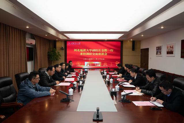 11月26日上午,河北地质大学党委常委、副校长金胜一行到开云手机端·官方版在线调研交流。学校在南昌广兰校园行政楼401会议室召开座谈会,校党委常委、副校长邓居智出席。