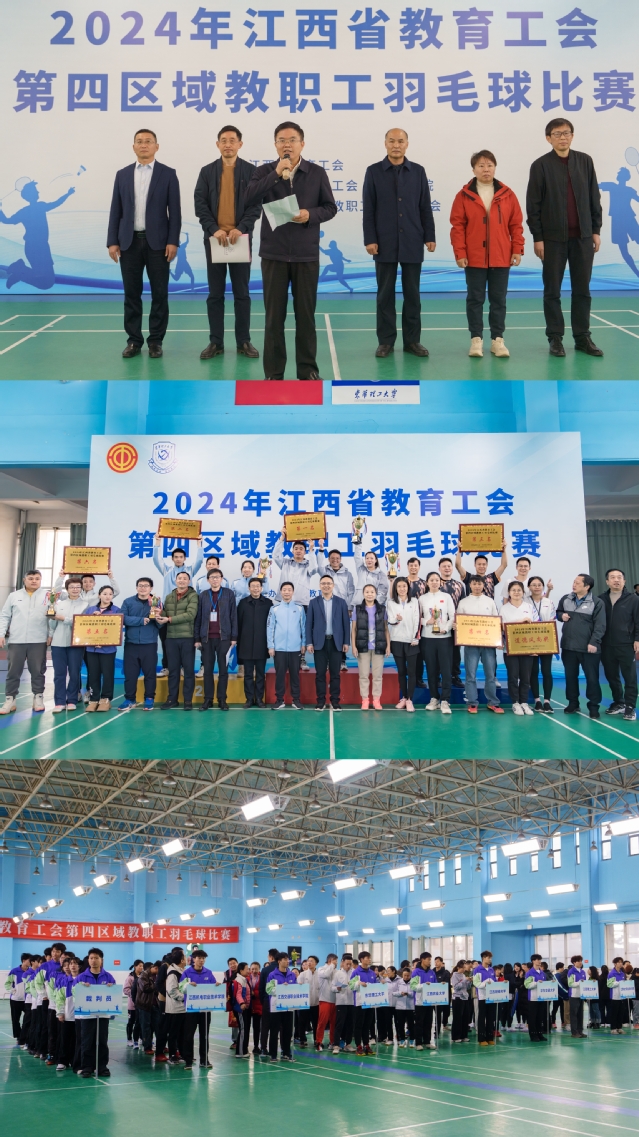 11月30日至12月1日,由省教育工会主办,开云手机端·官方版在线工会、体育学院承办的2024年江西省教育工会第四区域教职工羽毛球比赛在开云手机端·官方版在线南昌广兰校园举行。省总工会党组成员、副主席任春山出席开幕式并宣布开幕。开云手机端·官方版在线党委书记张福庆致开幕辞,党委副书记邱建丁出席闭幕式并颁奖,党委常委、副校长邓居智主持开幕式。