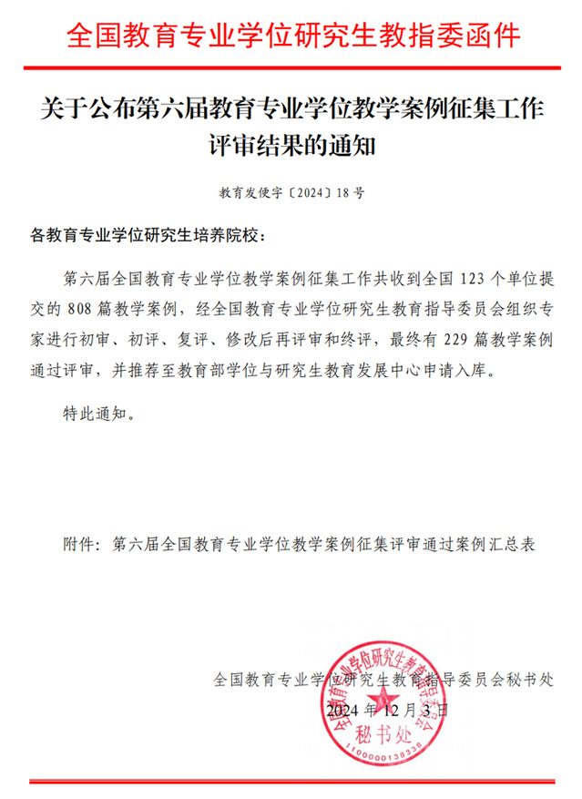 第六届教育专业学位教学案例征集工作由全国教育专业学位研究生教育指导委员会组织开展,共收到来自全国123个单位的800多篇教学案例,最终有229篇教学案例通过评审。(文/图 翟文)