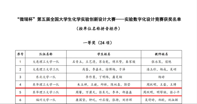 12月8日,微瑞杯第五届全国大学生化学实验创新设计大赛—实验数字化设计竞赛决赛在沈阳师范大学圆满落幕。开云手机端·官方版在线学生代表一队朱玉妍、王婕、邱新、陈双喜、郭莹和代表二队周馨、万潇天、张末凡、李丰、邵鑫鑫均获全国一等奖。