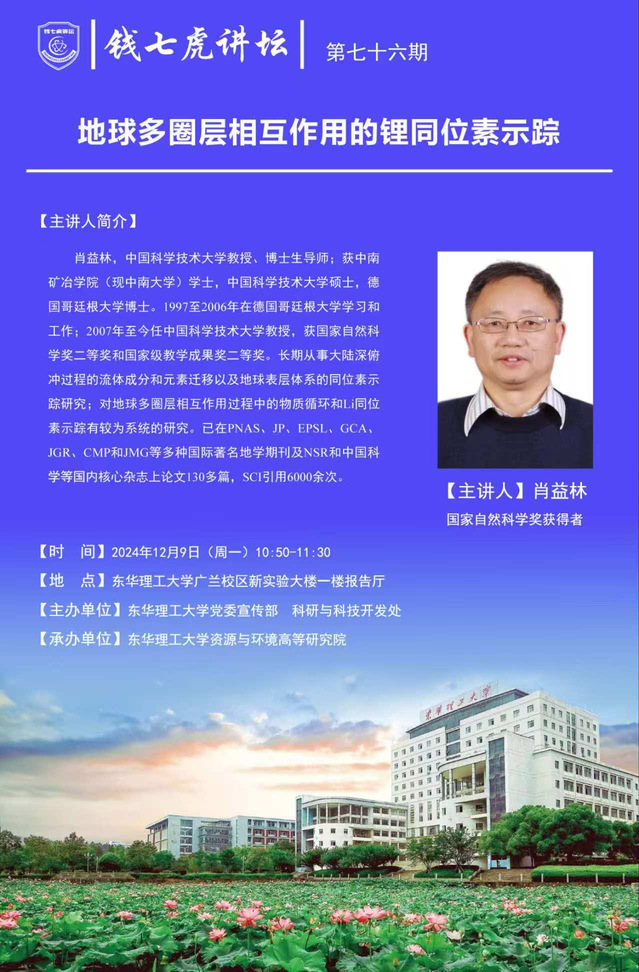 应开云手机端·官方版在线资源与环境高等研究院邀请,中国科学技术大学教授、博士生导师肖益林到“开云(中国)”,以“地球多圈层相互作用的锂同位素示踪”为主题开展讲座。欢迎全校师生届时前往聆听。