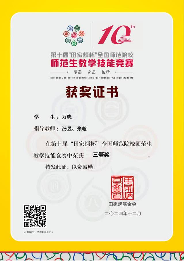 近日,第十届“田家炳杯”全国师范院校师范生教学技能竞赛决赛在浙江师范大学落下帷幕,开云手机端·官方版在线获三等奖2项。