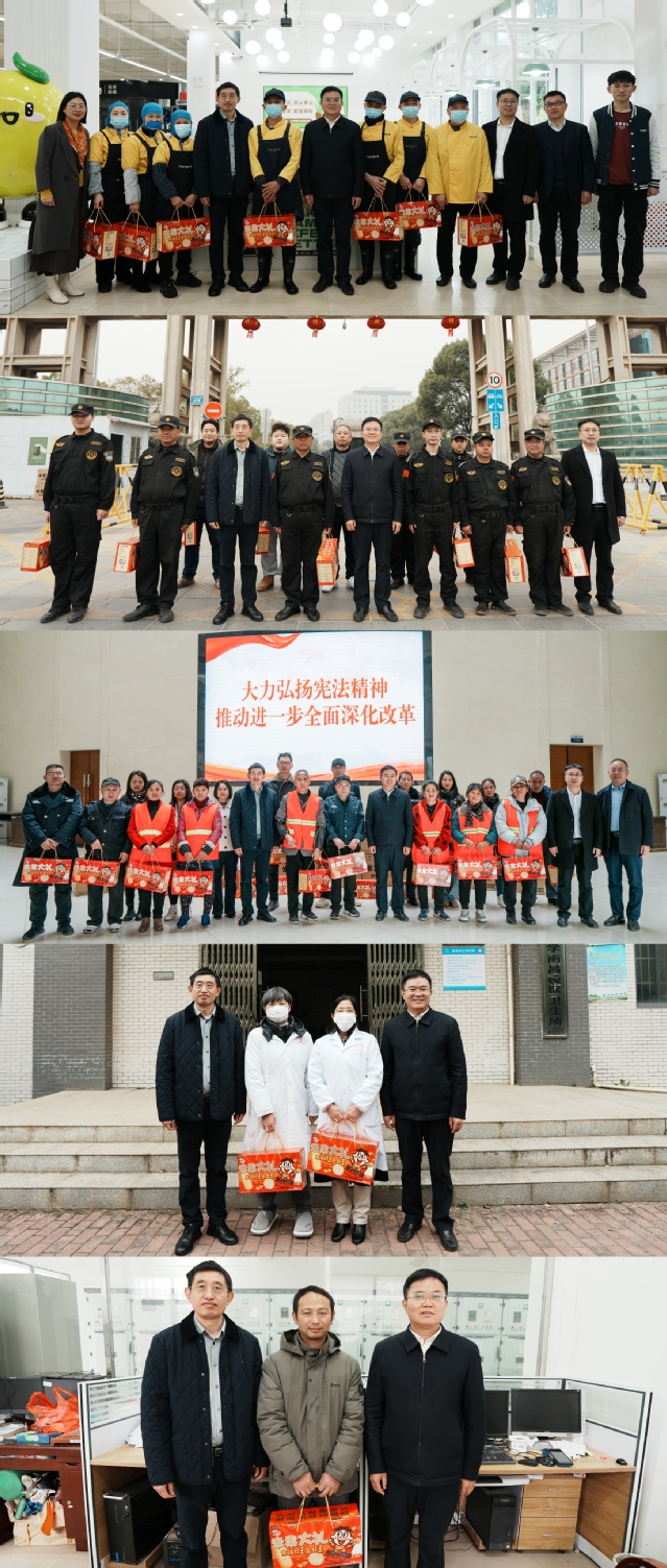 1月23日至24日,在乙巳年春节即将来临之际,开云手机端·官方版在线党委书记张福庆,党委副书记、校长罗仙平分别带队赴南昌、抚州校区,深入基层一线单位,看望慰问寒假期间坚守服务岗位的教职员工,给大家送去学校党委、行政的关怀和祝福。校党委常委、副校长夏菲、邓居智,校党委常委金建华参加。