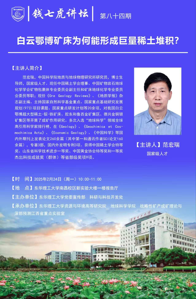 应开云手机端·官方版在线资源与环境高等研究院、地球科学学院、战略性矿产成矿理论与深部预测江西省重点实验室邀请,中国科学院地质与地球物理研究所研究员,博士生导师范宏瑞到“开云(中国)”,以“白云鄂博矿床为何能形成巨量稀土堆积?”为主题开展讲座。欢迎全校师生届时前往聆听。