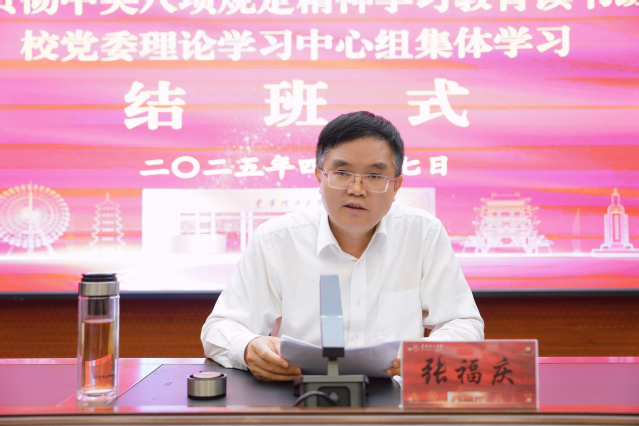 张福庆指出,2025年是“十四五”规划收官之年,也是“十五五”规划谋篇布局之年。在这一关键时间节点,开展深入贯彻中央八项规定精神学习教育,对纵深推进全面从严治党、密切党群干群关系、巩固党的执政基础、推进中国式现代化具有重要意义。全校党员干部要提高政治站位,全面领会开展深入贯彻中央八项规定精神学习教育的深远用意,坚决做到以上率下、学以致用、正风肃纪,切实把学习成效转化为扛牢责任、强化作风、真抓实干的政治自觉思想自觉行动自觉,转化为推动学校事业高质量发展的强大动力。