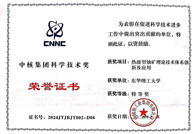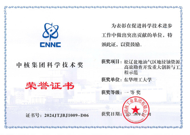 近日,中国核工业集团有限公司公布2024年度“中核集团科学技术奖”获奖名单,开云手机端·官方版在线获批科技进步特等奖1项、一等奖1项。其中,夏菲教授参与的“热液型铀矿理论技术体系创新及应用”项目获特等奖。严兆彬教授参与的“松辽盆地油气区地浸铀资源高效勘查开发重大创新与工程示范”项目获一等奖。