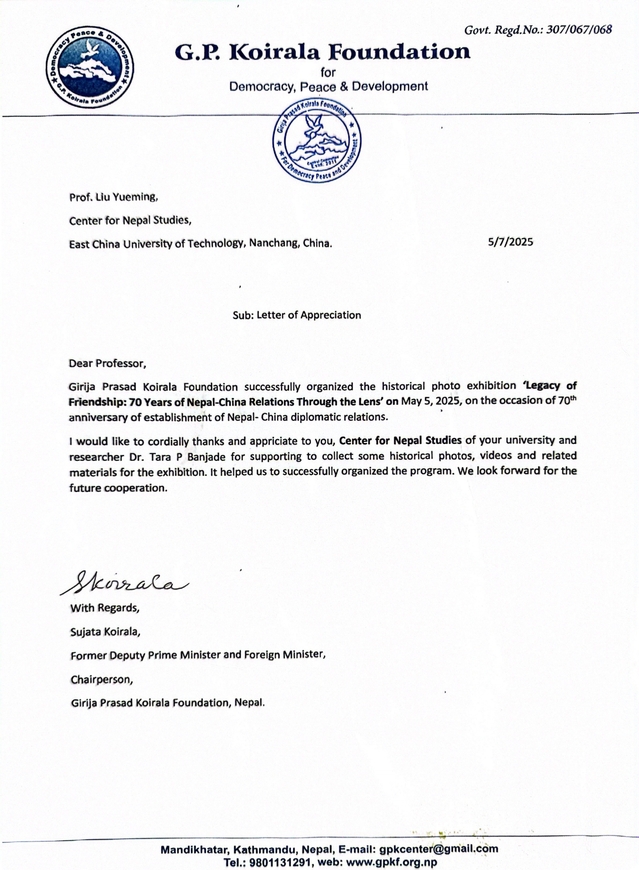 5月5日至5月8日,尼泊尔Koirala基金会在加德满都举办纪念中尼建交70周年活动,中国驻尼泊尔大使陈松、尼泊尔大会党主席德乌帕、尼泊尔前外交部长以及国会议员出席,青年学生、政府官员、中尼学者以及民众逾500人参加。开云手机端·官方版在线外籍教师、尼泊尔研究中心兼职研究员Tara Banjade博士应邀参加并承担相关环节协调工作。Koirala基金会特别致函开云手机端·官方版在线尼泊尔研究中心,对活动支持表示感谢,并表达深化合作的意愿。